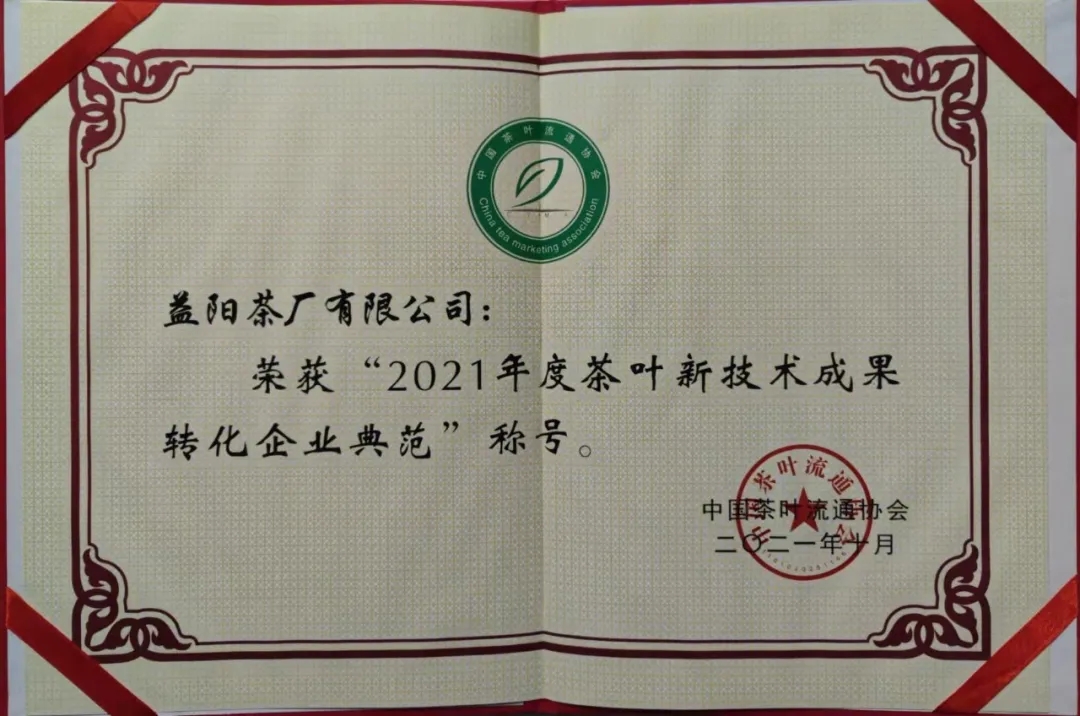 △益陽(yáng)茶廠(chǎng)有限公司榮獲【2021年度茶業(yè)暢銷(xiāo)品牌】△益陽(yáng)茶廠(chǎng)有限公司榮獲【2021年度茶葉新技術(shù)成果轉化企業(yè)典范】