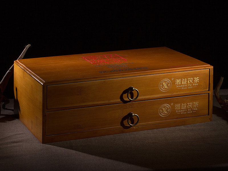 每件涵蓋機制茯磚茶和手筑茯磚茶2種茯磚茶形態(tài),每片規格為2kg ,設計匠心獨運,采用特制的抽屜式竹盒包裝,暨是產(chǎn)品包裝也可做茶葉樣品柜,每套竹盒都刻有獨立編號,限量發(fā)售。